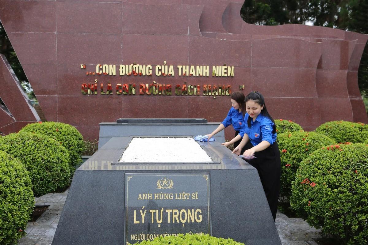 Bạn trẻ chăm sóc phần mộ anh Lý Tự Trọng tại quê nhà Hà Tĩnh