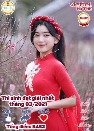 DƯƠNG THỊ THU HIỀN Giải Nhì cấp tỉnh, giải C cấp Bộ tư lệnh QK IV- Cuộc thi "Tìm hiểu 50 năm Ngày giải phóng miền Nam, thống nhất đất nước"; NH: 2024 – 2025 GVHD: Trần Thị Thanh Tâm |