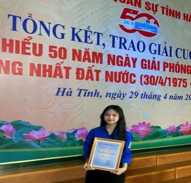 TRỊNH HÀ HOÀNG ANH Giải Nhì cấp tỉnh, giải C cấp Bộ tư lệnh QK IV- Cuộc thi "Tìm hiểu 50 năm Ngày giải phóng miền Nam, thống nhất đất nước"; NH: 2024 – 2025 GVHD: Trần Thị Thanh Tâm |